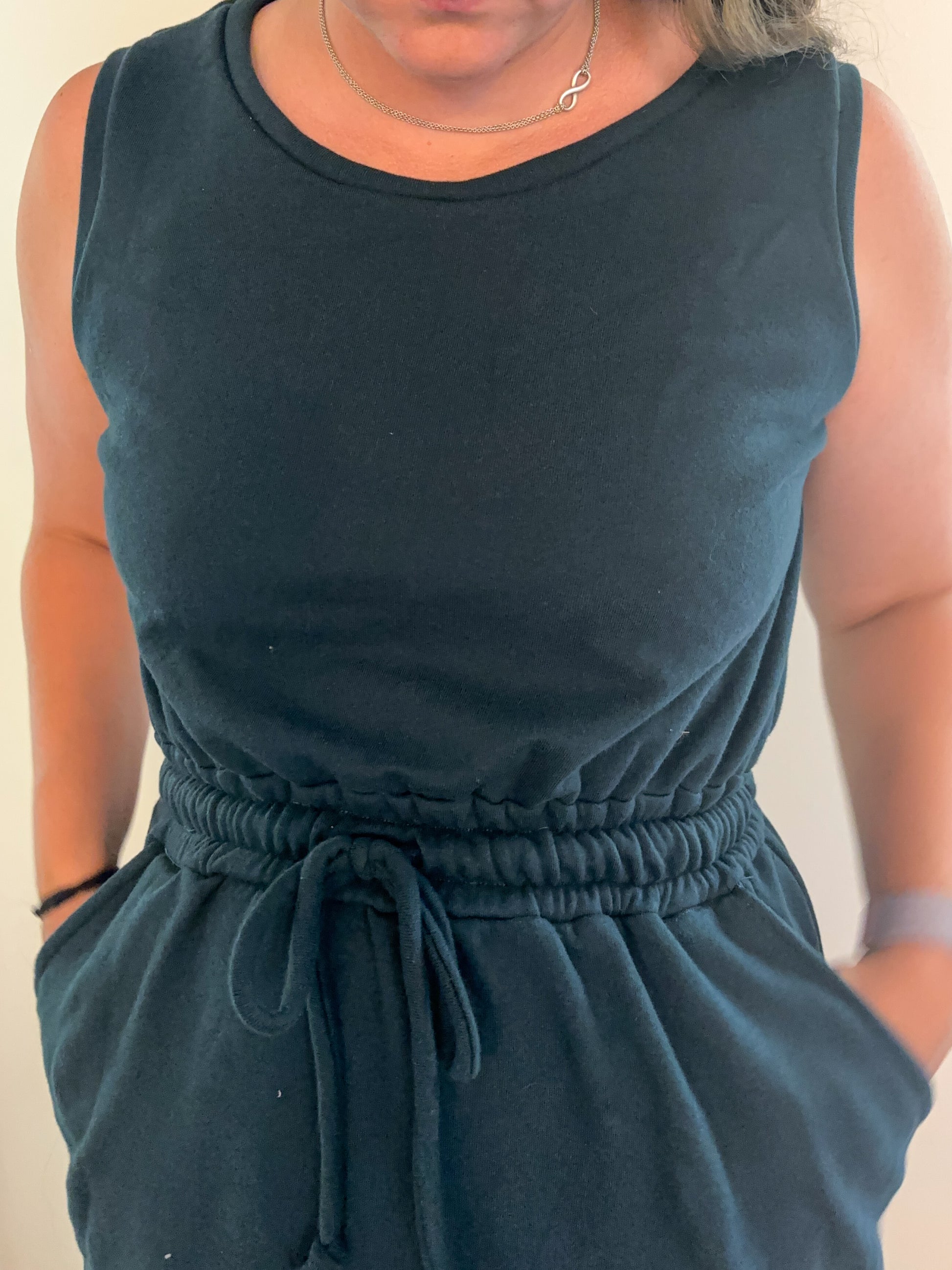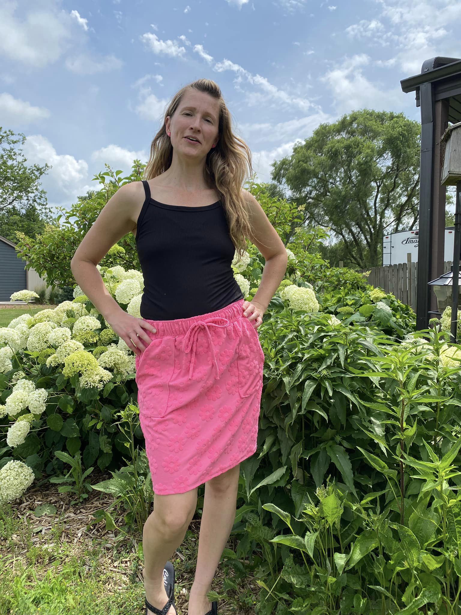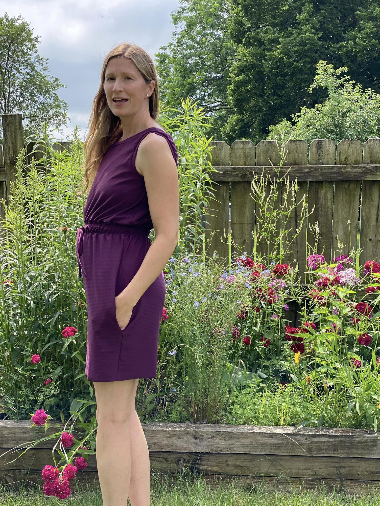 The Drew skirt and dress is a loose fitting, casual skirt or dress with an elastic waistband.The dress option offers a sleeveless style finished with bands and a relaxed fit bodice. Choose between a basic crew neck line or a scoop back. The skirt (added on to the dress or stand alone) offers three lengths (mini, above the knee, and midi), two hem finishes (straight hem or wide facing with curved hem), four pocket options (inseam, inset, patch, and raw edge patch), and a drawstring.
