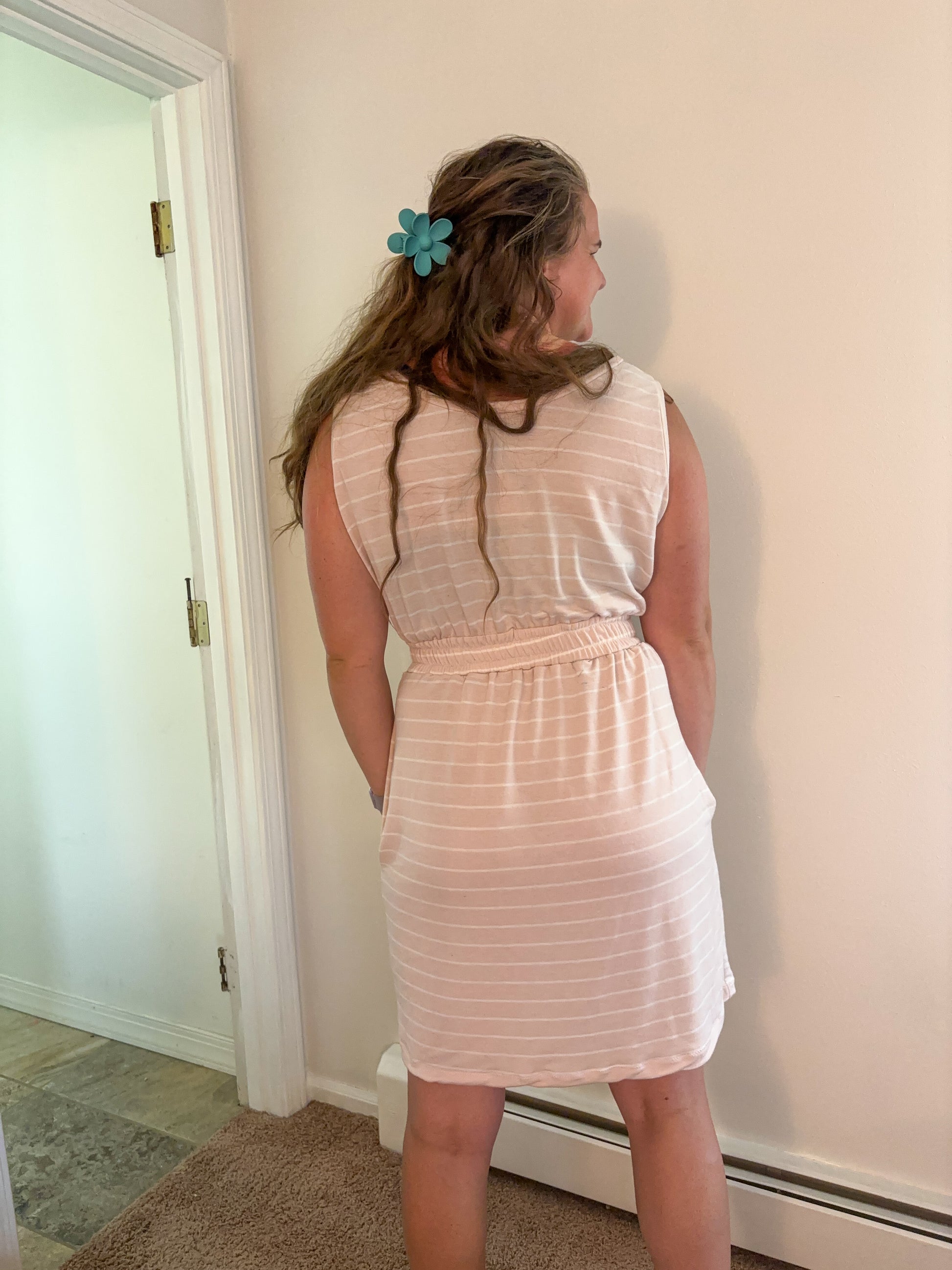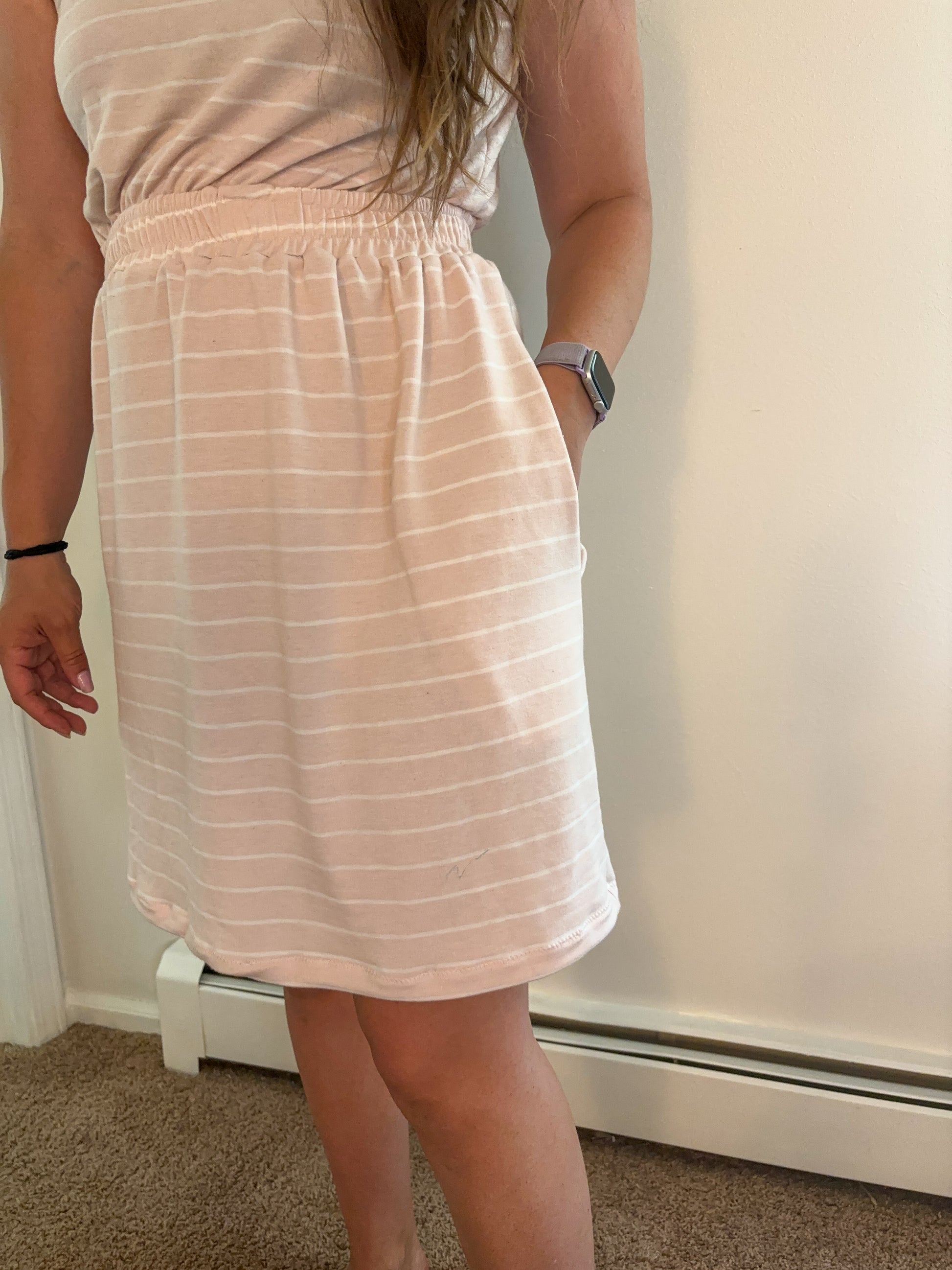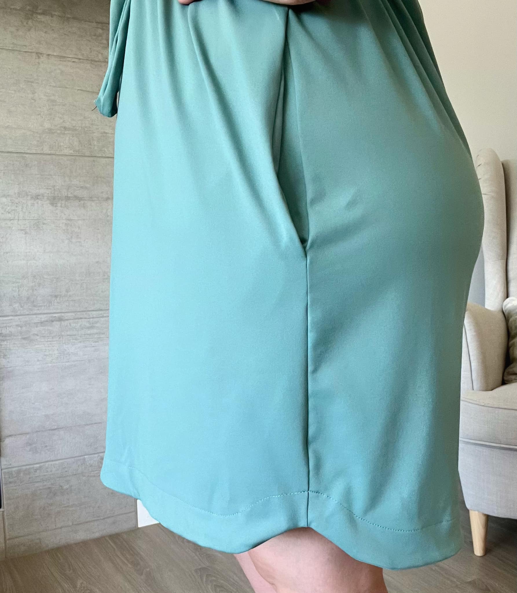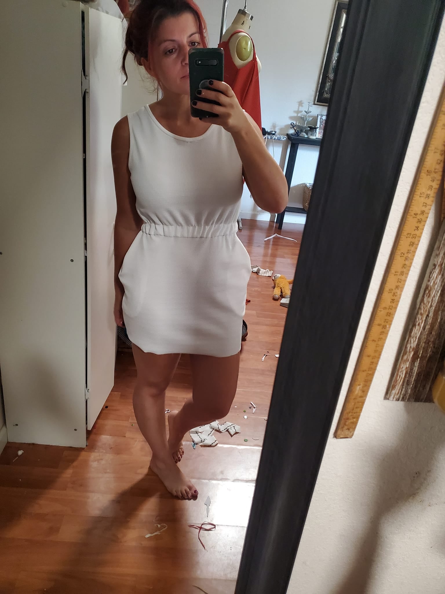 The Drew skirt and dress is a loose fitting, casual skirt or dress with an elastic waistband.The dress option offers a sleeveless style finished with bands and a relaxed fit bodice. Choose between a basic crew neck line or a scoop back. The skirt (added on to the dress or stand alone) offers three lengths (mini, above the knee, and midi), two hem finishes (straight hem or wide facing with curved hem), four pocket options (inseam, inset, patch, and raw edge patch), and a drawstring.
