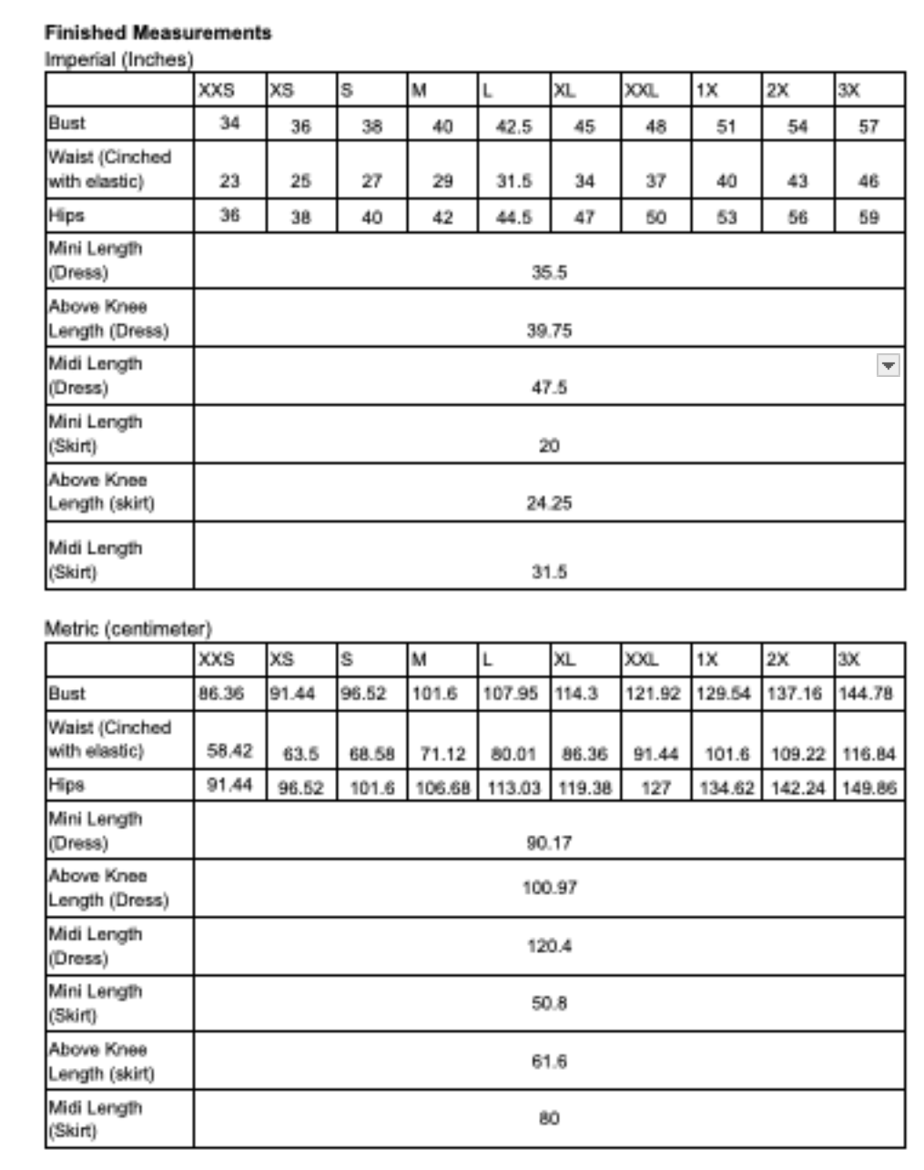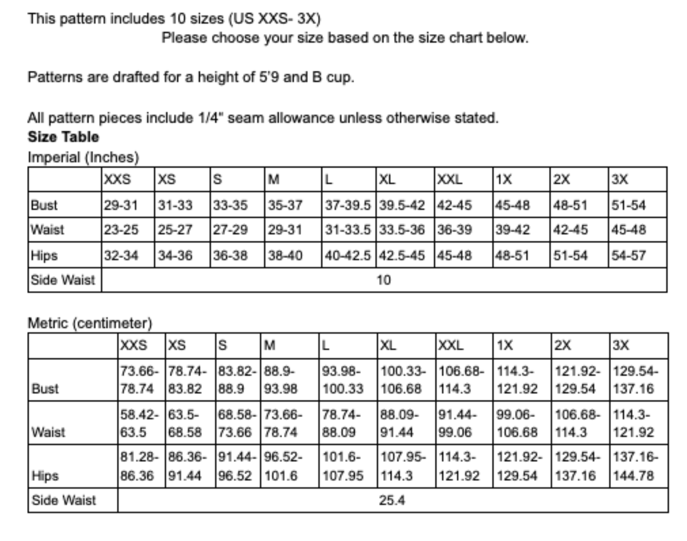 *Note: fabric content and weight may affect the fit and drape of the finished garment