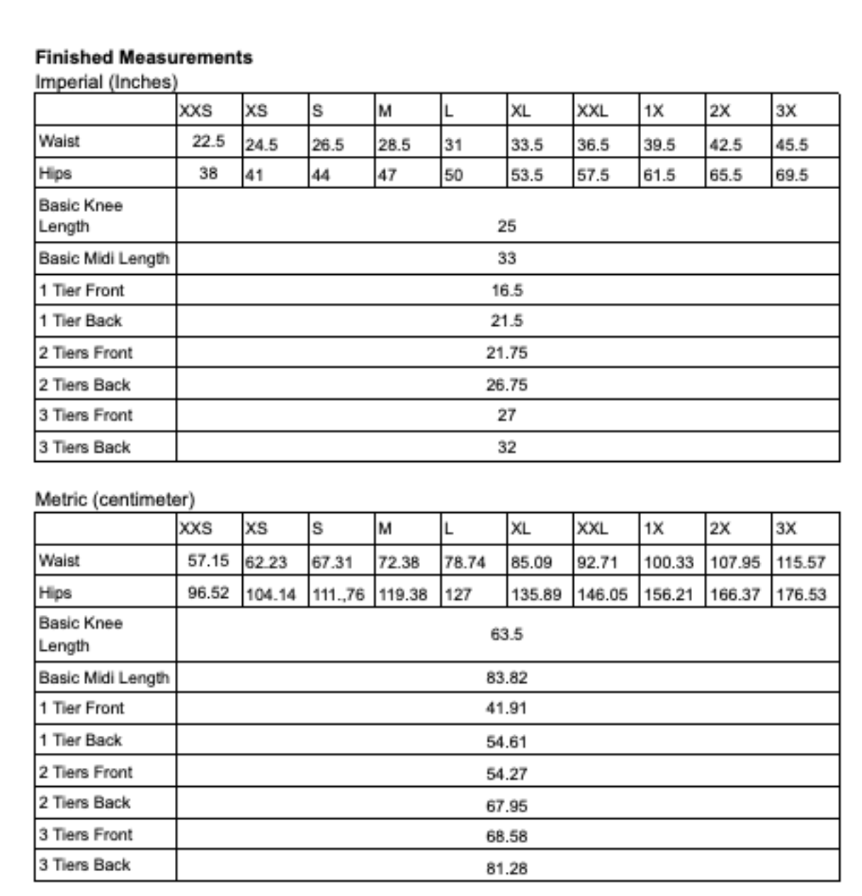 The Aurora Skirt is the fun and flirty skirt you are needing! It offers a hi-lo option with gathered tiers, as well as a basic A-line option. The tiered style can be made with 1, 2, or 3 tiers depending on the desired length. The flat front, elastic back waistband hits at the waist and allows for extra comfort.