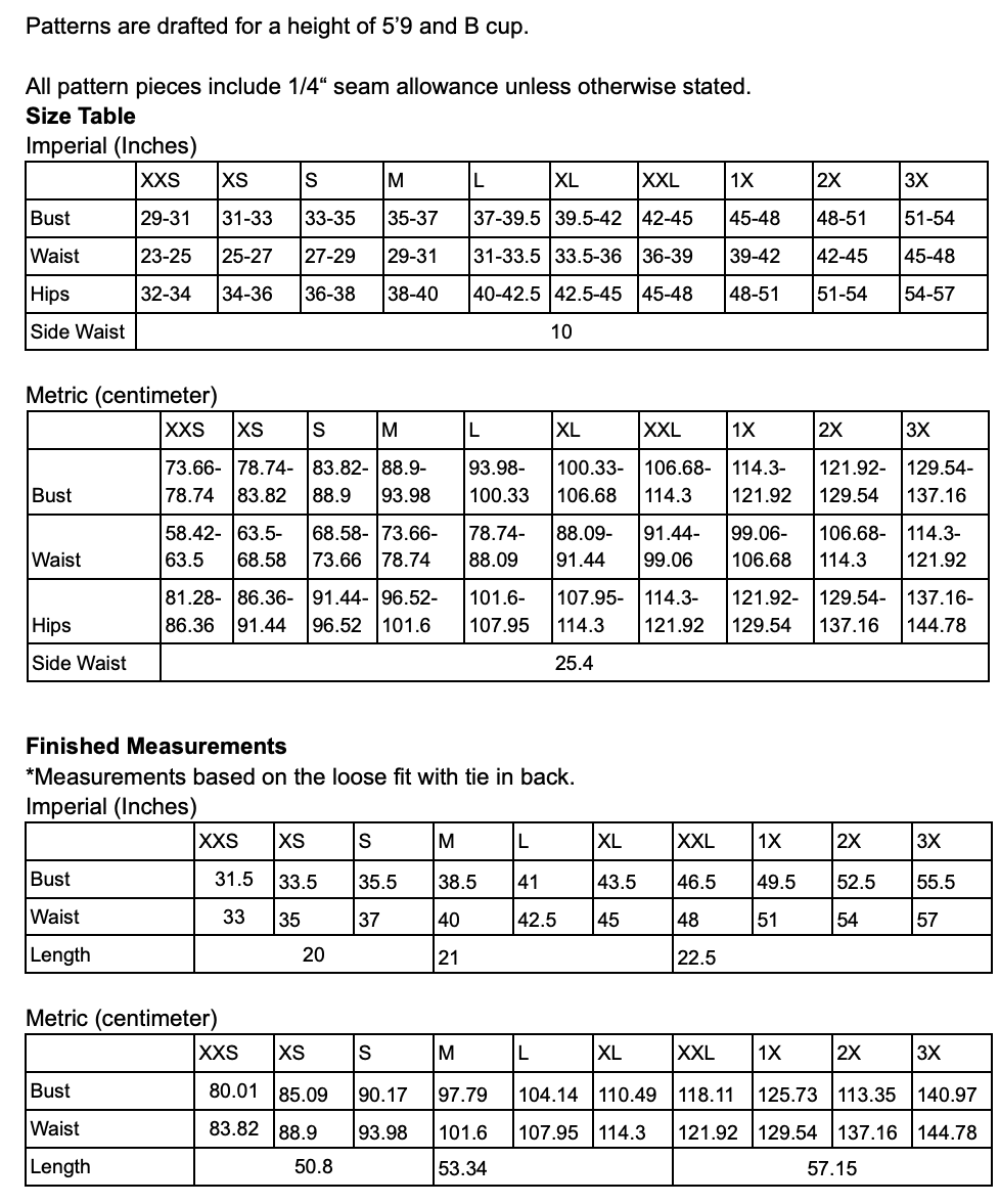 *Note: fabric content and weight may affect the fit and drape of the finished garment