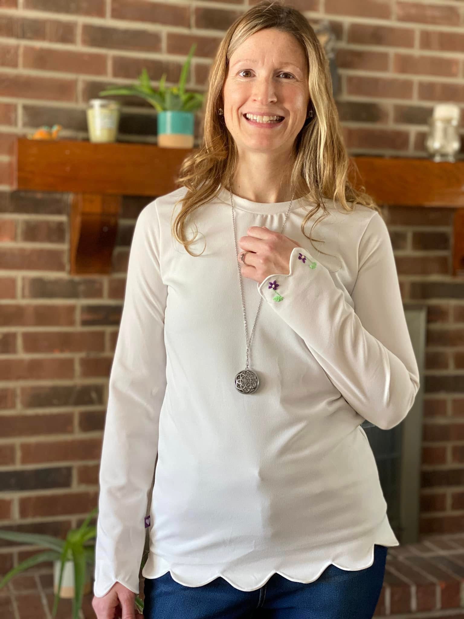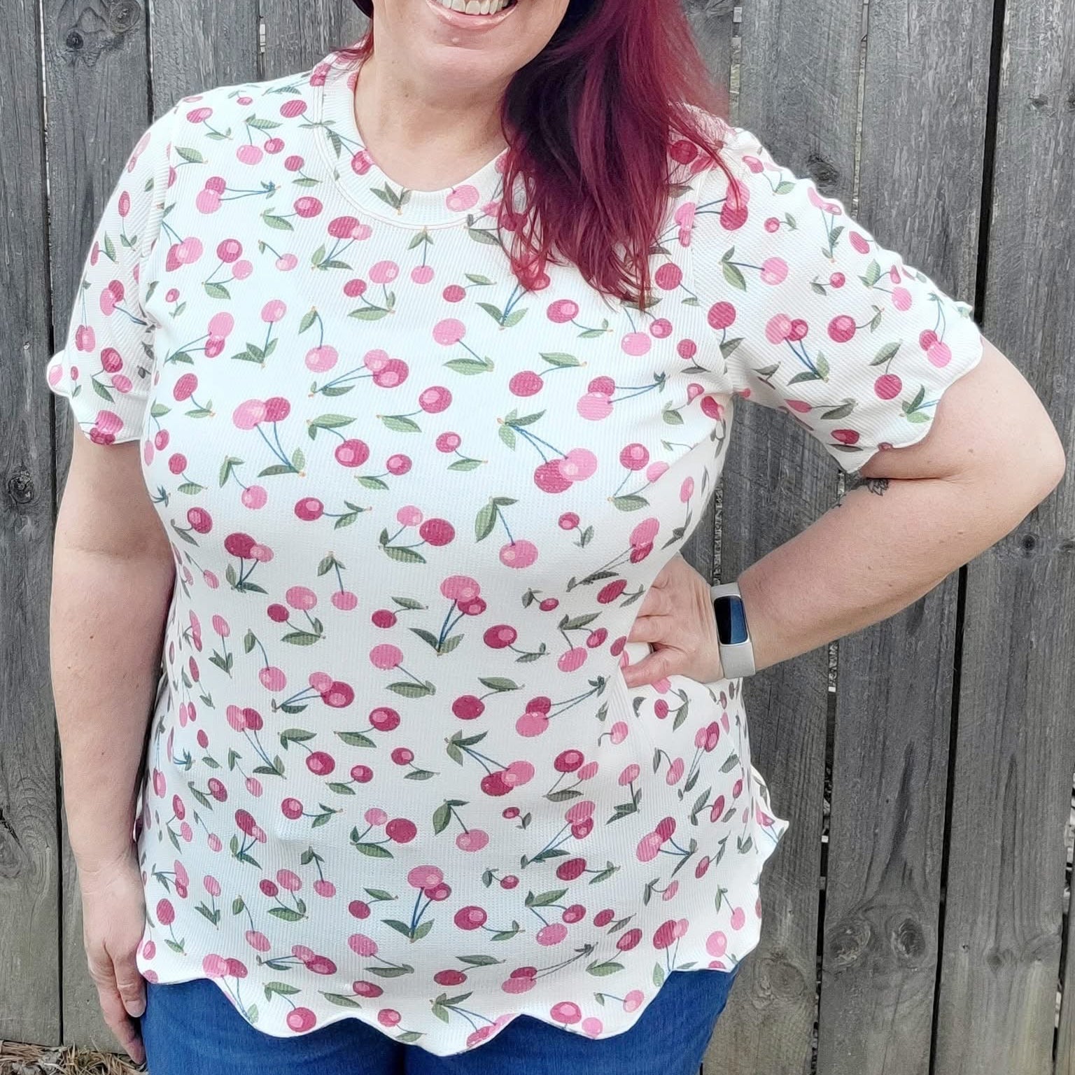 Rosie is a top and dress pattern for any occasion. Featuring beautiful scalloped hem and a fun and sweet look or opt for the basic hems for an everyday look. Choose between a shirt, mini dress, or layered dress. The layered dress features a high-low babydoll bodice with a  scalloped or simple band and a gathered skirt. The pattern also includes a short and long sleeve, two neck lines (crew and scoop) with a scalloped option for the crew neck.