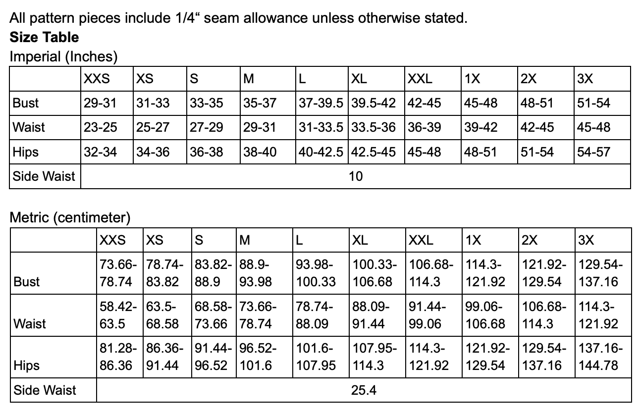 *Note: fabric content and weight may affect the fit and drape of the finished garment