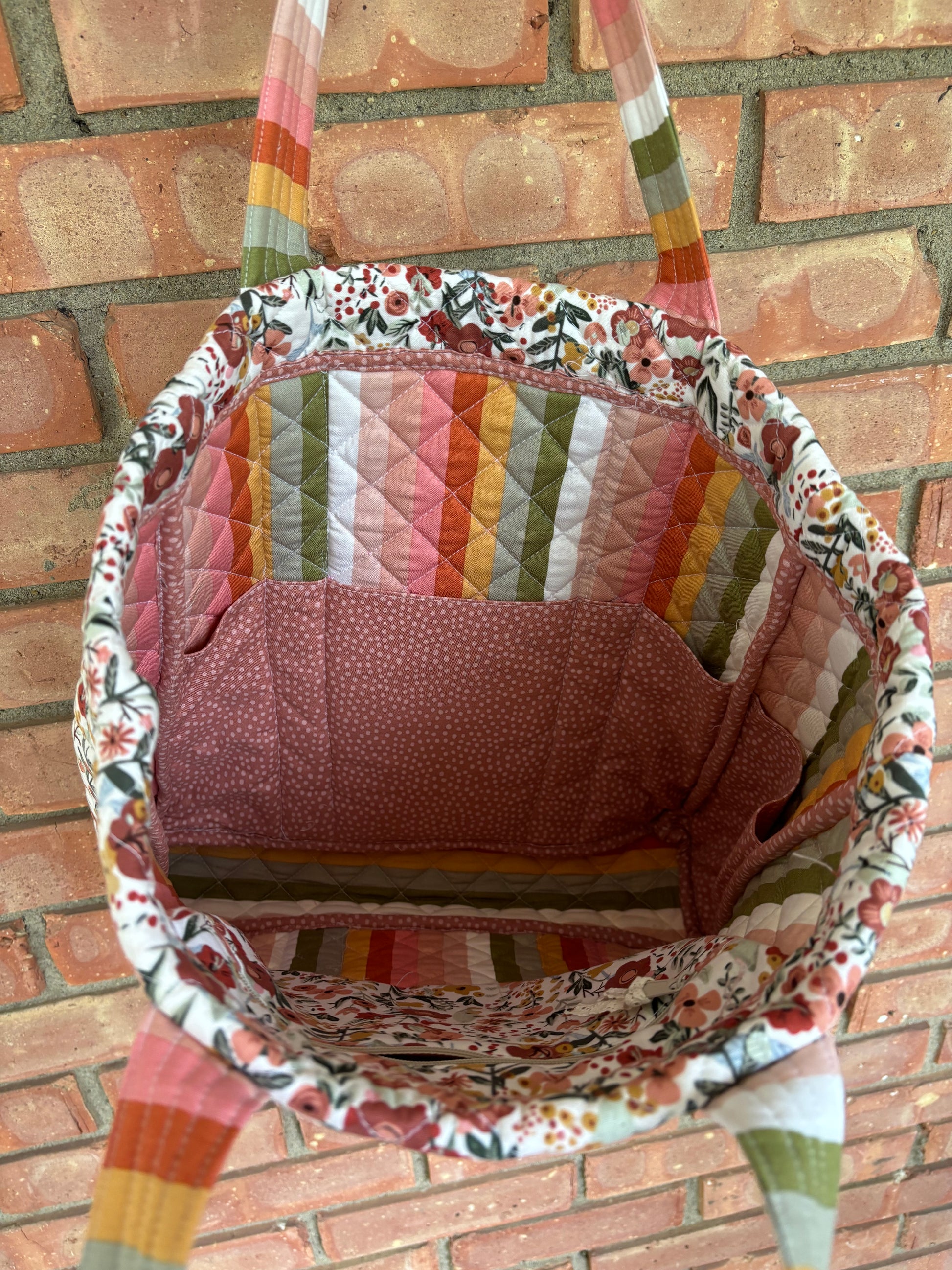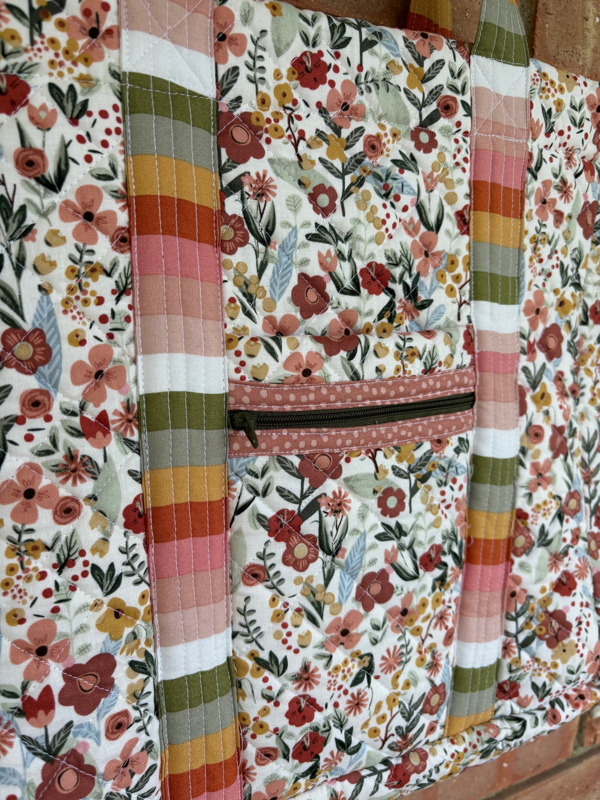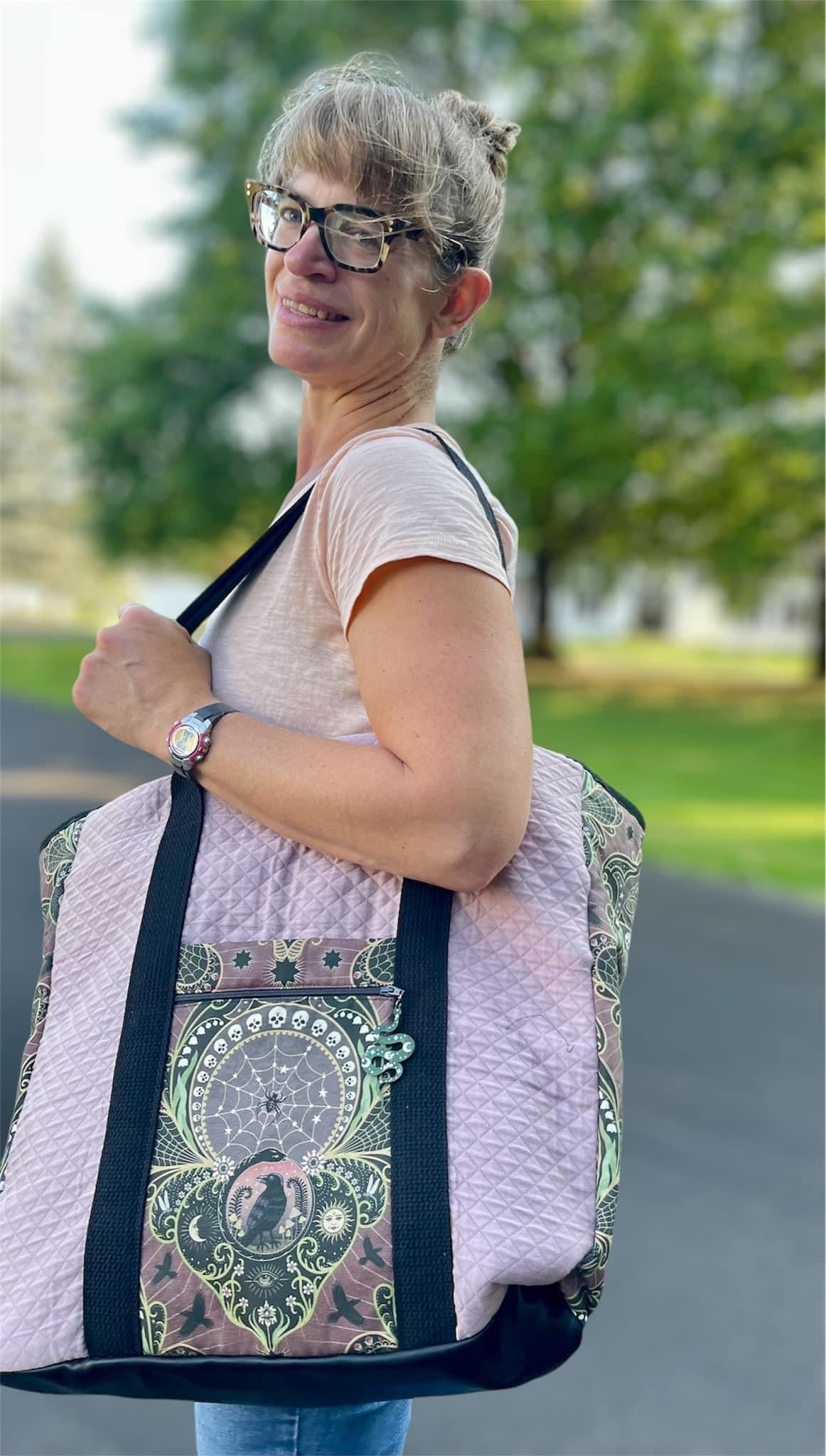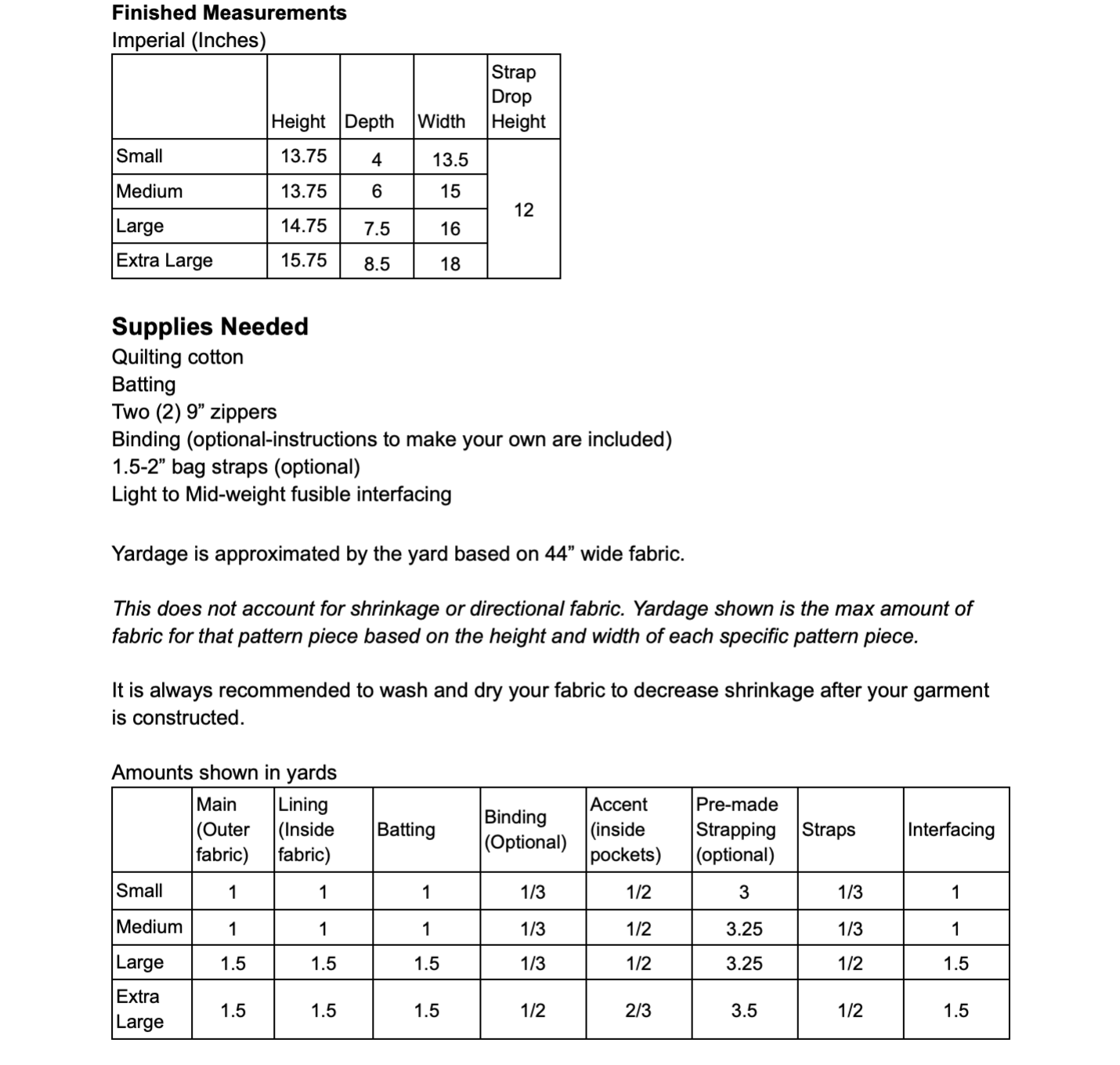 The Tote-ally Full Tote is your new go to bag for any occasion! With 4 size options, you can pick the size to fit your needs! Designed for beginner bag makers, you can choose to finish your seams with binding or a non-binded option! The quilted design provides padding and structure to the bag. The pattern includes a double front pocket with a zipper, an inside hanging zipper pocket, and multiple inside pockets!